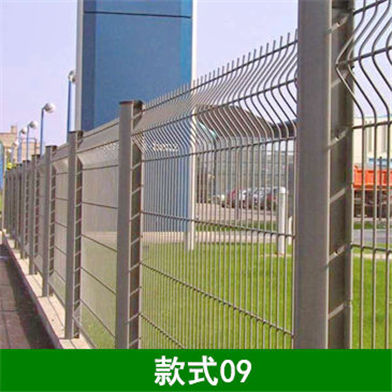桃形柱护栏网指的就是护栏网的立柱形状是桃形形状,其网片一般为双边丝网片,并且带有折弯,折弯道数一般为1-3道折弯;网孔大小一般为9*17cm;立柱高度一般为2.1m,立柱壁厚一般是0.5/0.8/1.0/1.2/1.5mm;丝经一般为350#、380#、400#、450#、500#等型号;钢丝数量一般为11*33根;常规一整套的尺寸为1.8*3m。