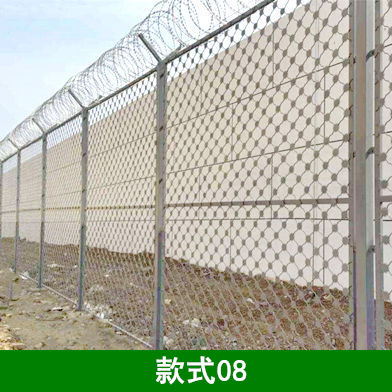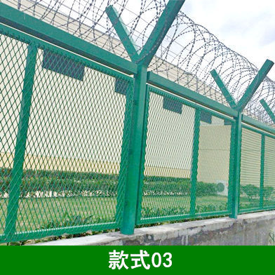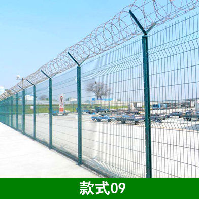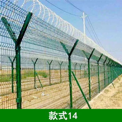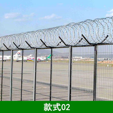 2、刀片刺绳钢筋网围界围栏形式采用钢筋网结构形式,其金属部分要求进行脱脂、表调、磷化、钝化等除锈、防腐处理,通过静电喷涂工艺达到防腐年限不少于10年。其具体尺寸和安装形式应符合《民用运输机场安全保卫设施》(MH/T7003-2017)中的相关规定。