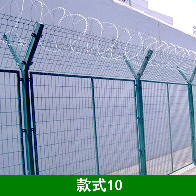 9、设计中刀片刺绳钢筋网围界立柱顶部应加盖柱帽,立柱与钢筋网、立柱与斜撑及立柱与延伸臂的连接采用防盗形式并经防腐处理。