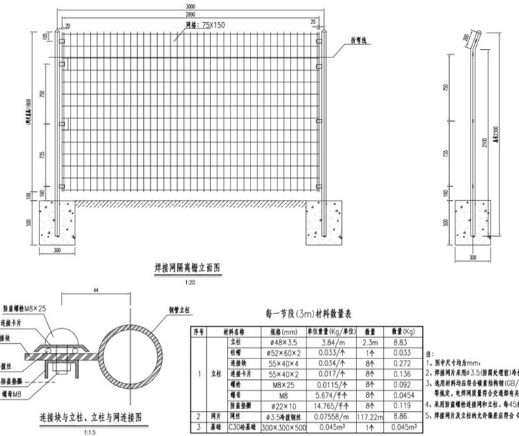 二、焊接网隔离栅设计参数