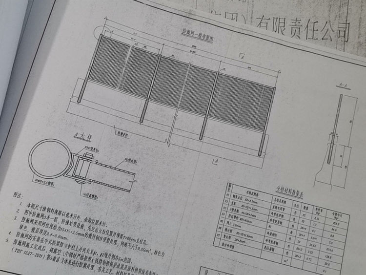 1、本图防抛网尺寸除钢料规格以毫米计外,余均以厘米计。