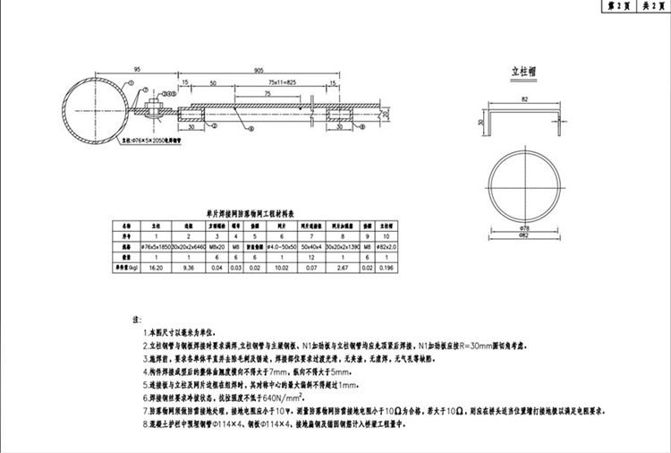 11.防落物网立柱安装前应注意磨去底面塑层,以保证与套筒底板有良好的金属接触。