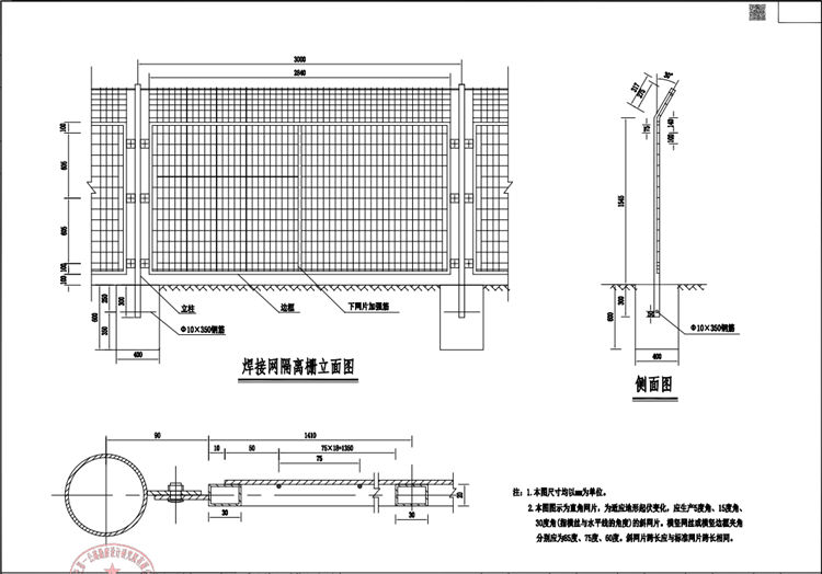 焊接网隔离栅(热浸镀锌+浸塑)立柱间距3m,所有钢构件均采用 Q235 钢,其力学性能应符合相关规范要求;施焊前要求各单体矫正平直并去除毛刺;焊接部位要求过度圆滑、 无夹渣、虚焊、气孔等焊接缺陷;构件组焊成型后需进行整体矫正,整形后的整体曲翘度不得大于7mm;钢管钢板等镀锌量为 275g/㎡,紧固件、连接件为 120g/㎡。涂塑层厚度应大于0.25mm。钢丝>0.15mm。具体参见《公路交通工程钢构件防腐蚀技术条件》(GB∕T18226-2015)。