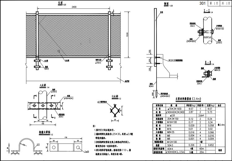 3.防落物网设置在支线.上跨桥砼护栏顶上,螺母所在的一边面向桥外。