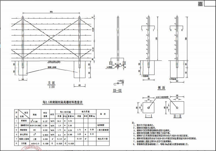7、基础混凝土强度达到70%后方可安装刺钢丝。