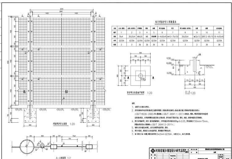 1.本图生活垃圾填埋场焊接网护栏尺寸以毫米为单位。