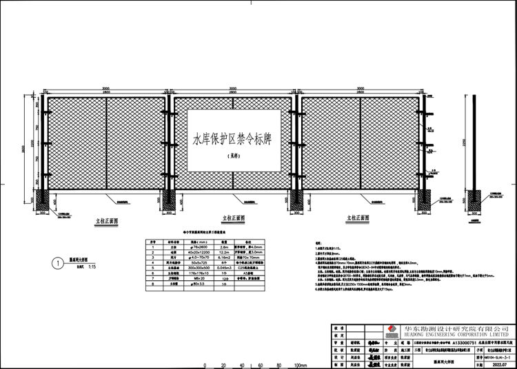 2.图中水库饮用水源地隔离网尺寸单位为mm。