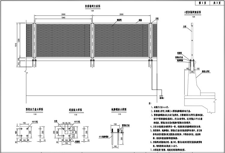 6、防抛网应做接地处理。施工时,需在合适的位置安装接地避雷铜线,铜线埋深应在地表2m以下。