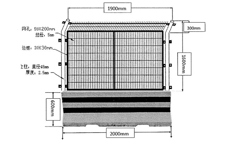 11、临港场地码头隔离围栏(含水泥座)总高度2200mm。