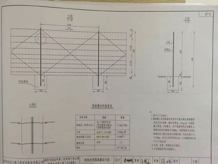 4.普通公路干线刺钢丝网隔离栅立柱基础采用C20混凝土。