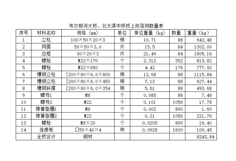 1.本图尺寸除注明外其余均以毫米为单位。2.立柱安装在桥梁护栏座上,用预埋螺栓加以固定。3.立柱采用冷弯内卷边槽钢,其质量应符合GB/6723-86。4.桥梁护网采用40x4mm镀锌扁钢进行防雷接地处理,镀锌扁钢与防落物网、波形梁护栏立柱、面板接触位置应绝缘处理,镀锌扁钢埋入地面线以下,其接地电阻应≥10欧姆。5.本图护栏形式仅为示意,施工时应根据钢护栏适当调整,顺适钢护栏外轮廓线型。6.立柱采用冷弯内卷边槽钢20*50*100*3.0mm;边框采用方管50*3.0mm;网片焊接网50*50*3.0mm。