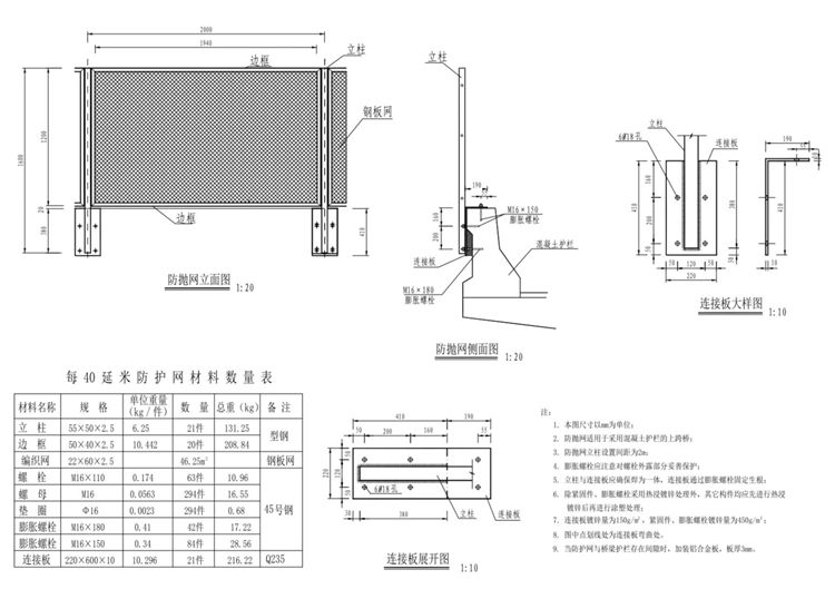 2.防抛网适用于采用混凝土护栏的上跨桥。