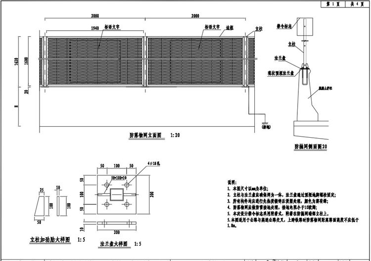6.本图适用于公路与高速公路交叉,上跨铁路时防落物网距离路面高度不应低于1.8m。