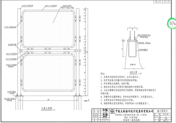 5、热镀锌防落网立柱与横撑在安装前要进行热镀锌,预埋钢板前要对钢板进行防锈处理。