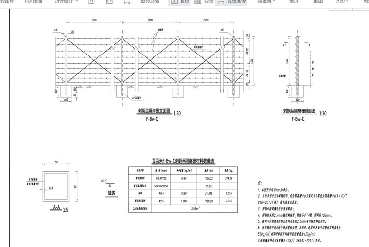 1.本图刺钢丝隔离栅尺寸均以mm为单位。