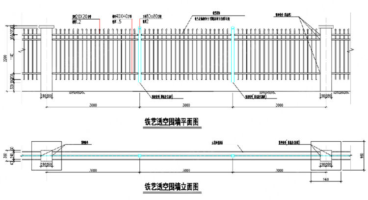 铁艺透空围墙横梁:40方管壁厚0.8mm。