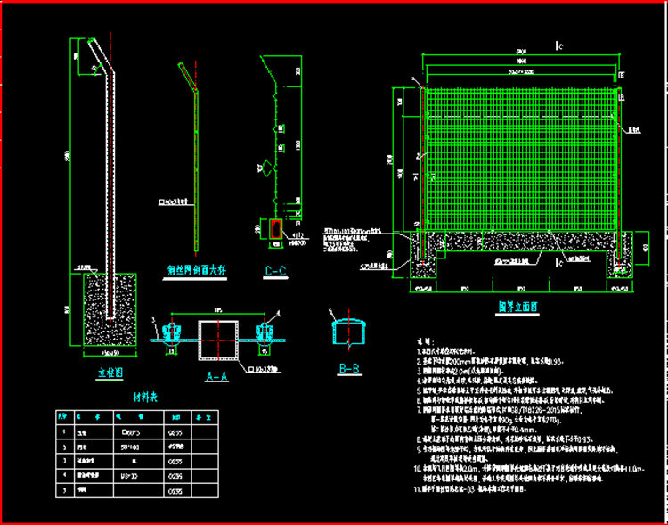 3.安全防护网净高2.0m(从地梁顶算起)。