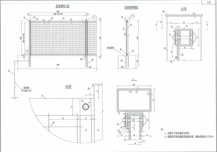 1、本图防落物网尺寸均以毫米为单位。