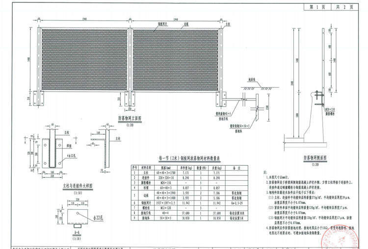 4.钢板网防落物网应作防雷接地处理,接地电阻应小于10Ω,若受环境影响,接地电阻达不到要求时,可增加接地体角钢数量。