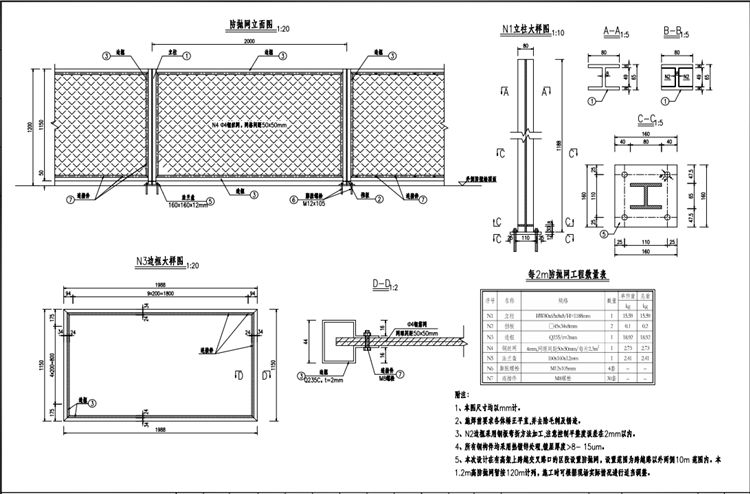 1、本图防落物网尺寸均以mm计。