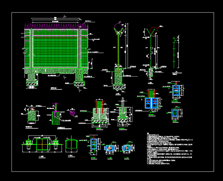 5.钢筋网围界在地表下的混凝士基础、地梁与土面接触的周围表面,需刷沥青。