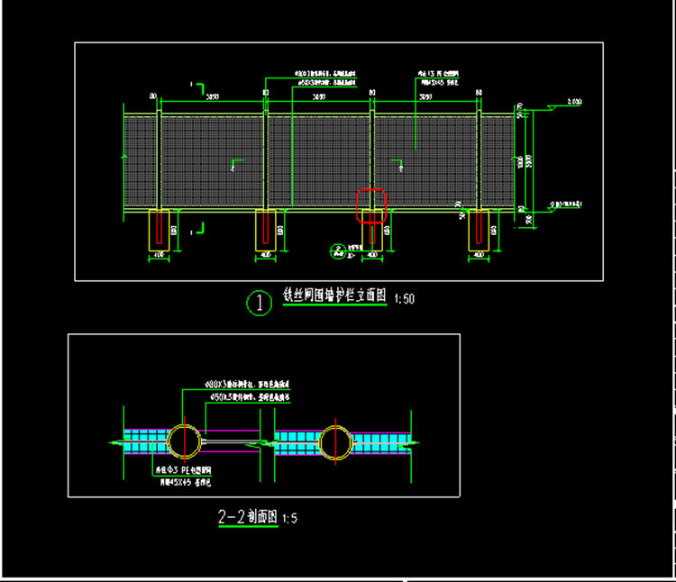 1、勾花网围栏网立柱采用Φ80*3.0mm镀锌钢管,表面静电喷涂墨绿色防腐工艺处理。