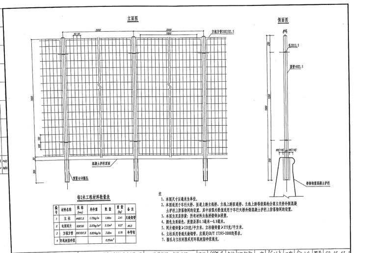 2、本图防落物网适用于车行天桥、匝道上跨主线桥、主线上跨匝道桥、 主线上跨等级路的分离立交桥外侧混凝土护栏上防落物网的设置。其中括弧内数值适用于车行天桥外侧混凝土护栏上防落物网的设置。