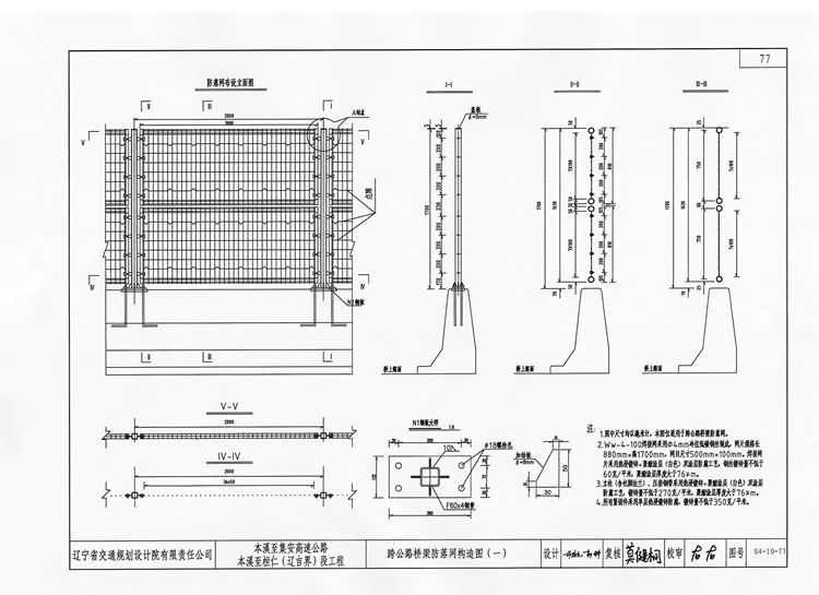 1.图中尺寸均以亳米计,本图仅适用跨公路桥梁防落网。