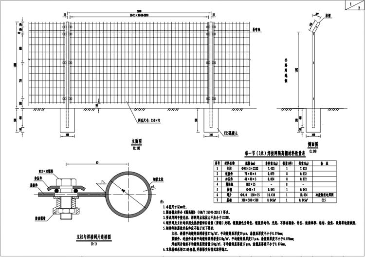 1.本图热镀锌铁丝网围栏尺寸以mm计。