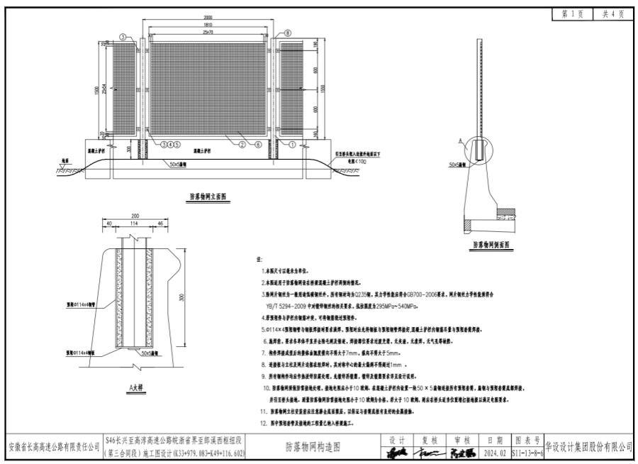 5.φ114*4预埋钢管与钢板焊接时要求满焊,预埋时应先将钢板与预埋钢管焊接好,混凝土护栏内钢筋尽量与预埋套筒焊接。