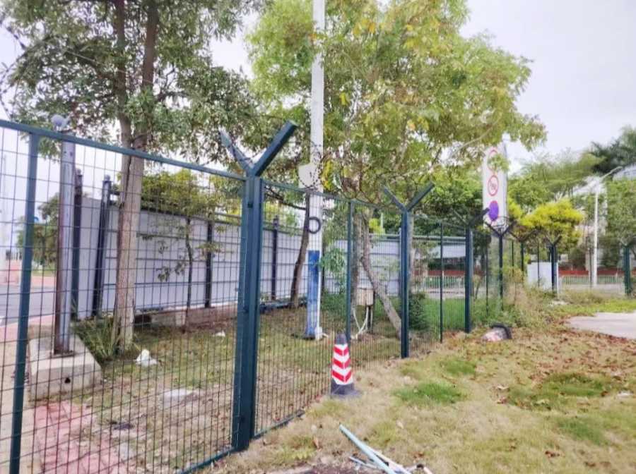 2、立柱:高1.8米,60*60*3mm立柱,边框30*30*1.5mm,钢板网60*110*4.0mm,上方安装倒刺,总高约2米。