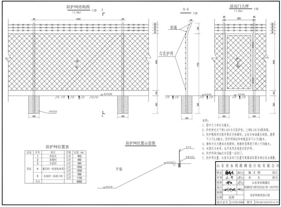 6、防护网每150m左右设置一活动门。